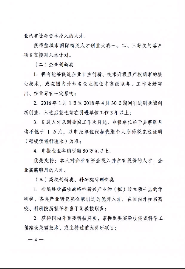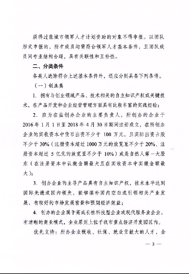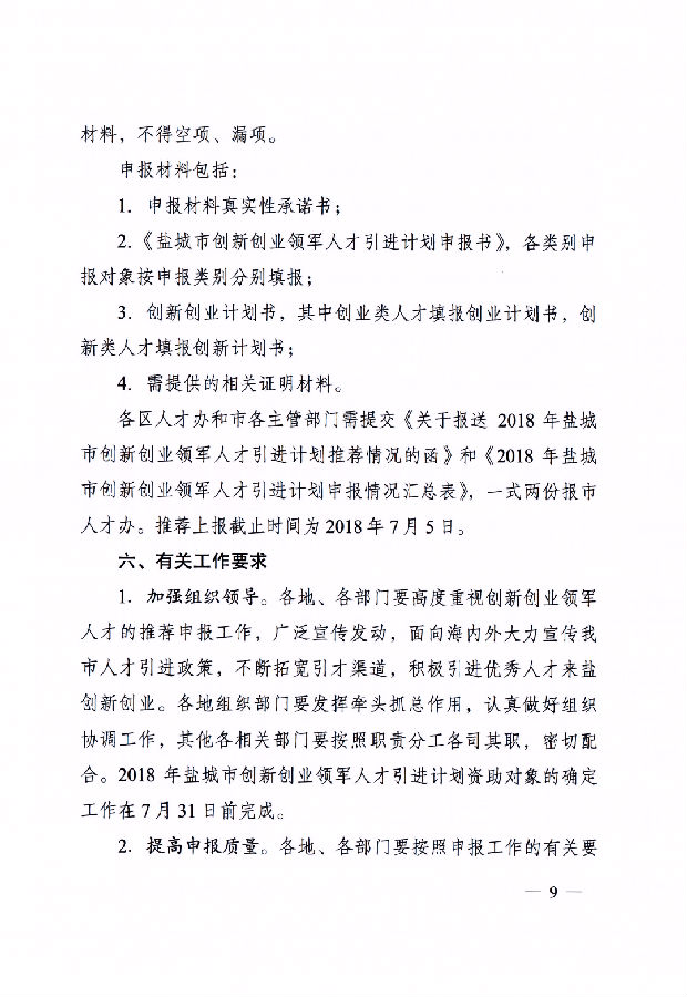 关于组织申报2018年盐城市创新创业领军人才引进计划的通知