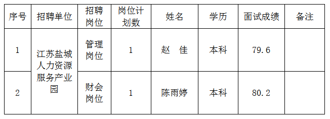 公开招聘劳务派遣人员拟聘用人员名单公示